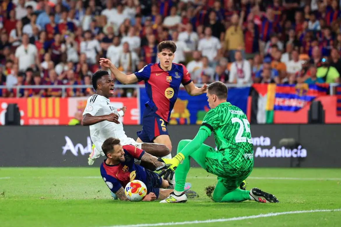 Late in the 90 at La Cartuja, wide-man Vinícius pulled up following a heavy challenge involving Jules Koundé, before immediately calling for a substitution.