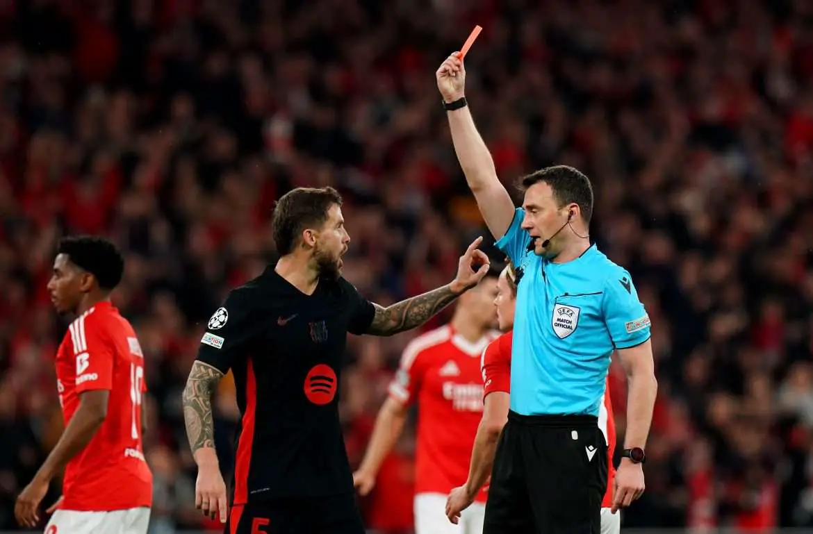 After VAR intervened following a last-man challenge on the part of Pau Cubarsí, the youngster was shown a straight red card.