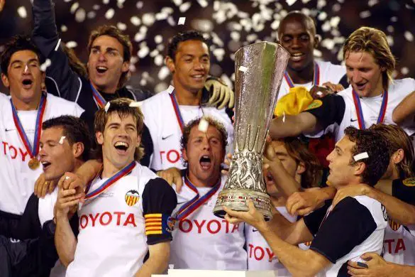 There was still one more hurdle left for the team; the UEFA Cup final against Marseille. Marseille had dropped out of the Champions League group consisting of Real Madrid and eventual winners Porto. In their UEFA Cup run, they had taken out Liverpool, Inter and Newcastle United with Didier Drogba proving to be a handful. In that final, they lined up in a 4-4-2, with Vicente and Rufete given the license to be devastating in the channels. The double-pivot of Baraja and Albelda held their own in the middle while Angulo and Mista played off each other upfront. In defence, the reliable back four of Carboni, Ayala, Marchena and Curro Torres were expected to deal with Marseille’s attacking threat, with Ayala and Marchena there to handle Drogba. In goal was Cañizares. The first half saw a balanced game with Valencia having it better in the final third. Just before half-time, Fabien Barthez took down Mista and got a red card. Jérémy Gavanon came on but could not stop Vicente’s expertly taken penalty. As Marseille tried to get into the game in the second half, Vicente laid on a brilliant pass to Mista to score just before the hour mark and send Valencia fans into raptures. Marseille still had thirty minutes to find two goals but it was not to be. Valencia held on to claim a famous doblete, the first in their history. A season that had started so horribly became the most memorable in their history!