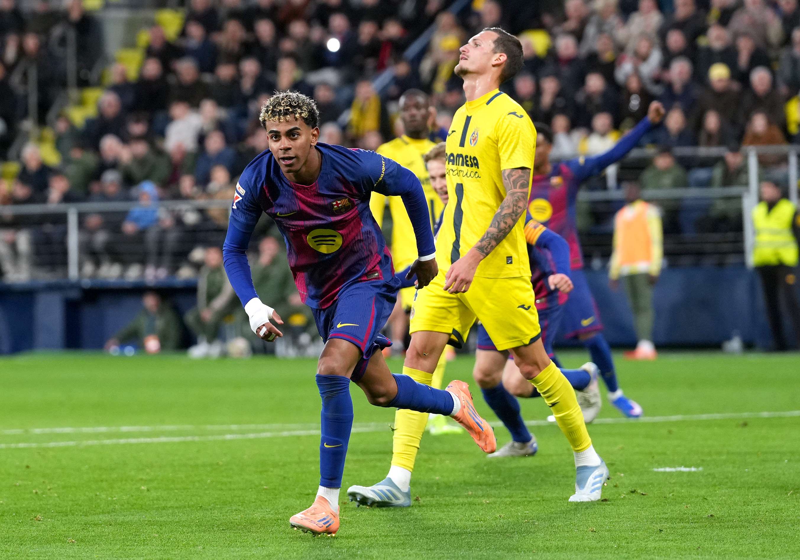 Lamine was the victim of a horror challenge on the part of Renato Veiga during the first-half at La Cerámica, culminating in the former Chelsea man being shown a straight red card.