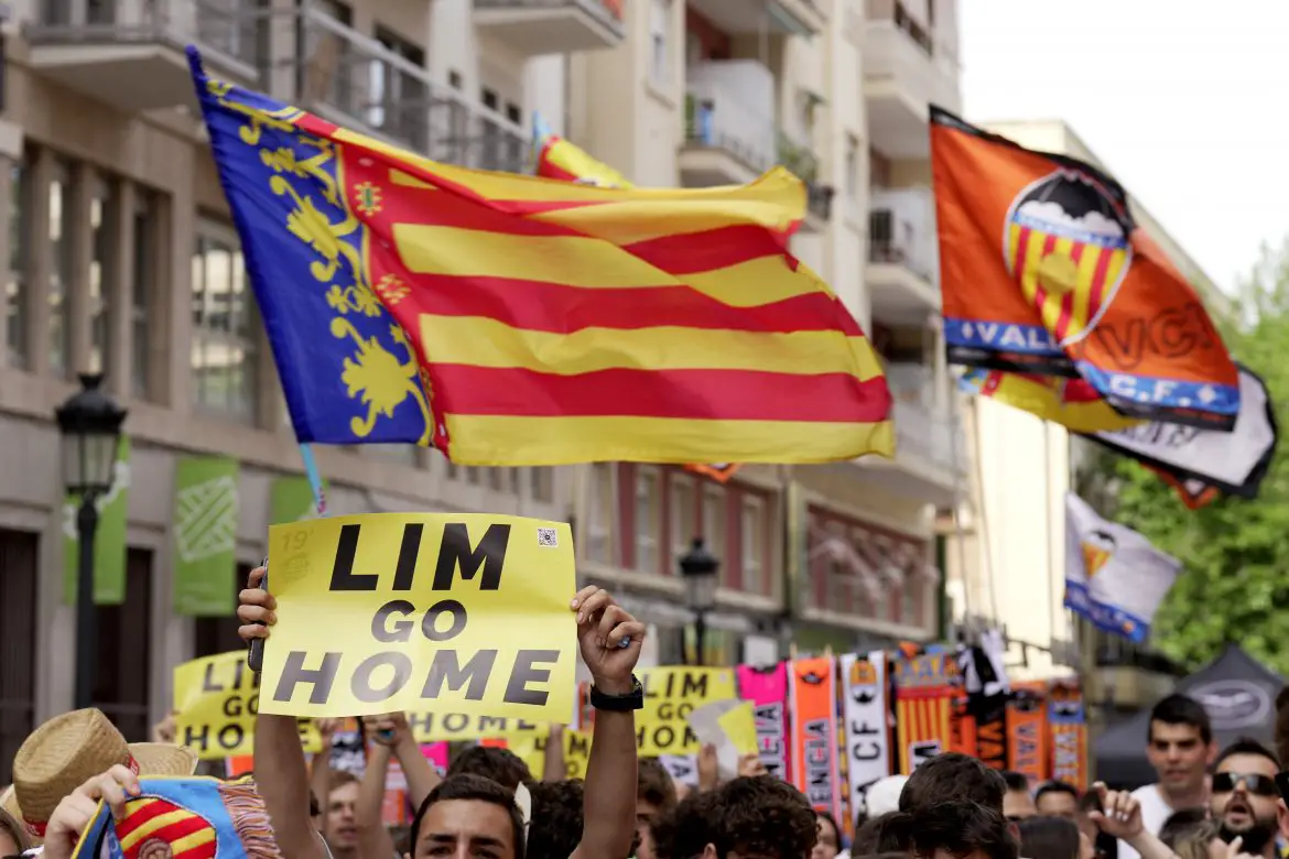 More than ten thousand Valencia supporters gathered outside their home stadium Mestalla to protest against Peter Lim, the largest shareholder of the club, and Anil Murthy, the club president, prior to the club’s final La Liga game of the season against Celta Vigo, report Marca.