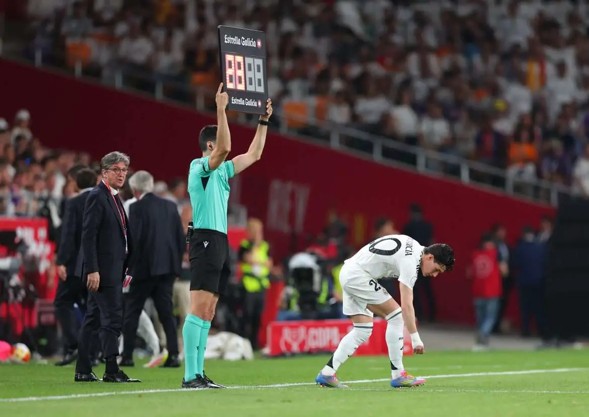 From here, the Real Madrid medical staff made their way onto the pitch, quickly calling for the former Lyon man to be replaced by Fran García.